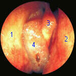 Blick in das rechte Nasenloch mit einem Endoskop.