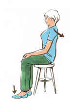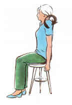 Setzen Sie sich mit aufgerichtetem Oberkörper auf einen Stuhl, ohne sich anzulehnen.